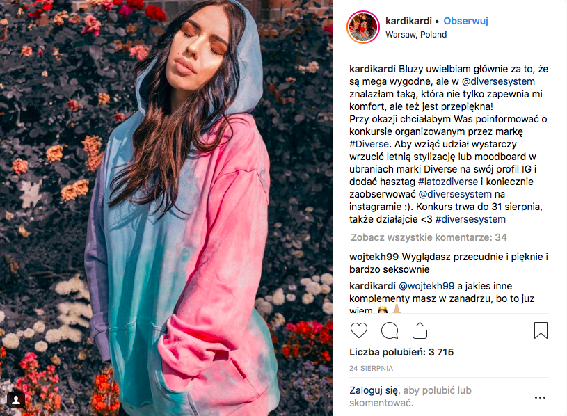 Każdy z influencerów opublikował 2 posty zwiększając efektywność kampanii. Pierwszy post przedstawiał własną stylizację z wybranymi przez siebie ubraniami z aktualnej kolekcji Diverse drugi był kompozycją typu moodboard, co pozwoliło na duże zróżnicowanie postów.