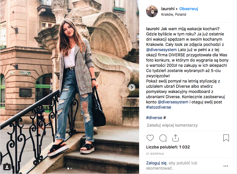 W treści postów influencerzy poinformowali o konkursie i zachęcili do polubienia kanału IG marki