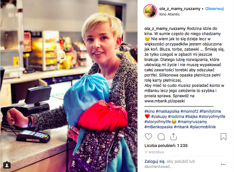 W ramach zadania influencerzy opublikowali post ze zdjęciem pokazując moment używania opaski płatniczej, w tej sposób na poziomie wizualnym podreślając wygodę jej użytkowania.
