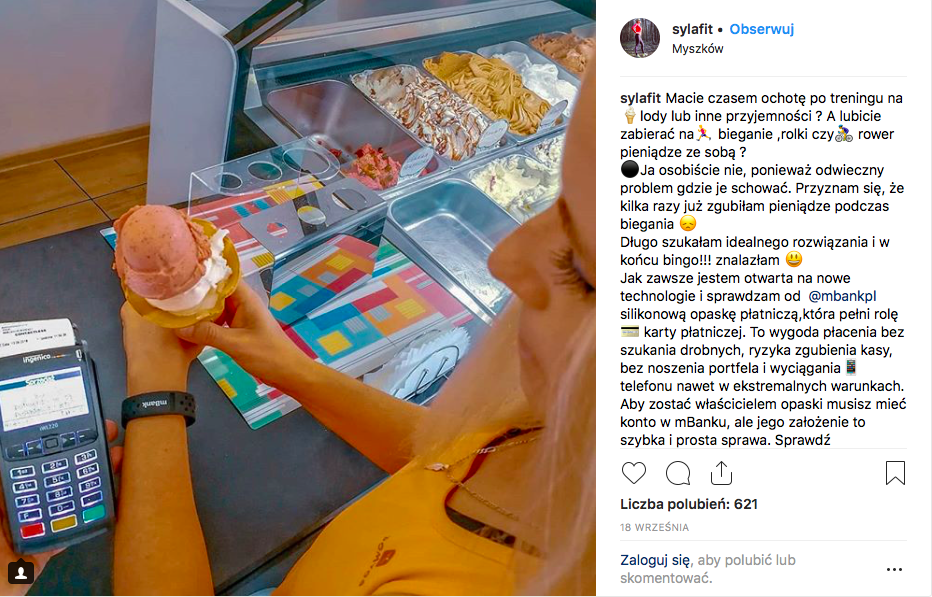 W treści postów influencerzy poinformowali o zaletach opaski, umożliwiającej płatności mobilne. Podreślili bezpieczeństwo i wygodę płatności, bez zajmowania rąk czy szukania drobnych.